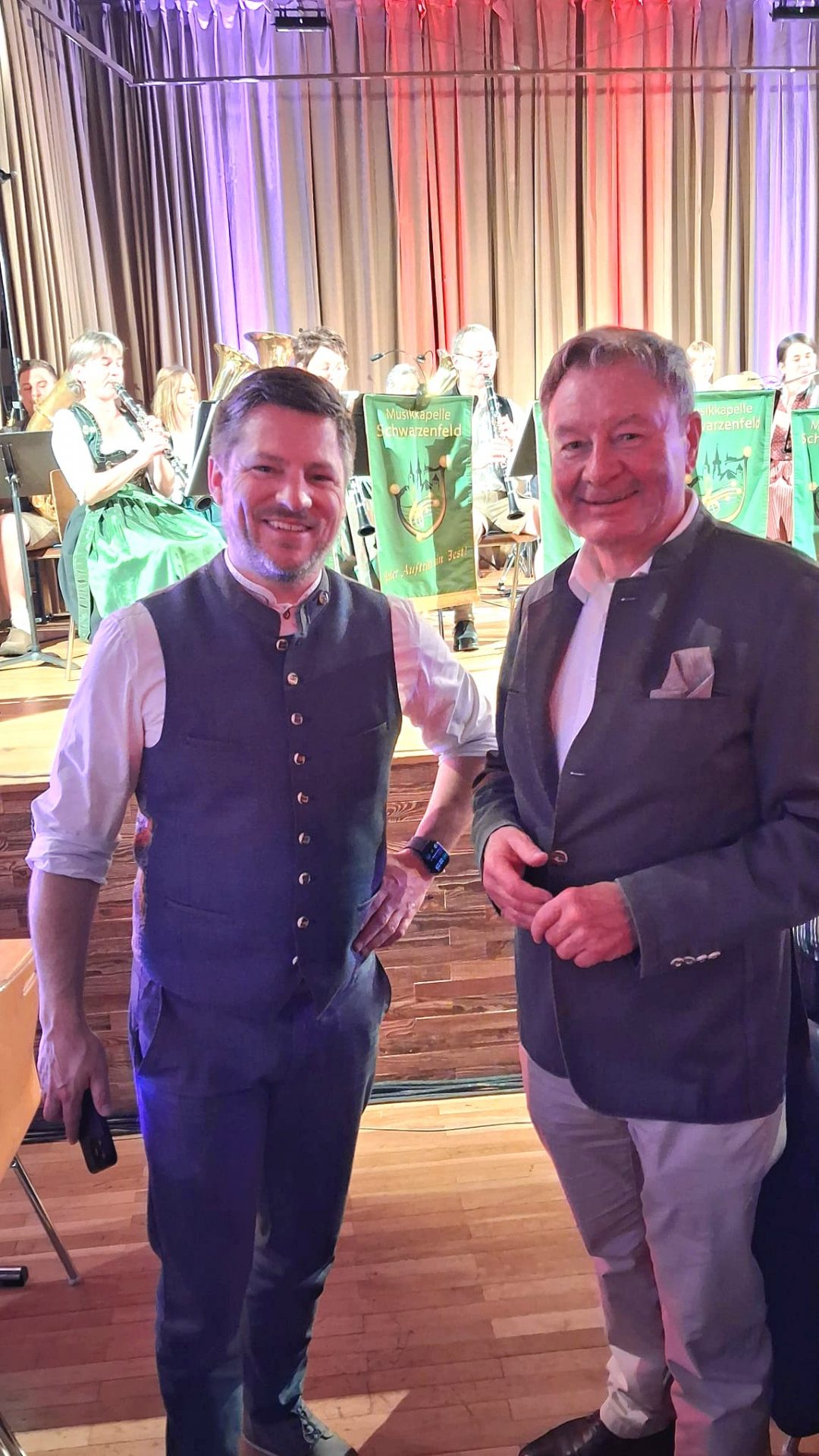 Der Markt Schwarzenfeld und der Oberpfälzer Kulturbund veranstalten seit vielen Jahren gemeinsam das Schwarzenfelder Sänger- und Musikantentreffen. Bild: Bürgermeister Peter Neumeier und OKB-Präsident Gerhard Schiechel (c: OKB)